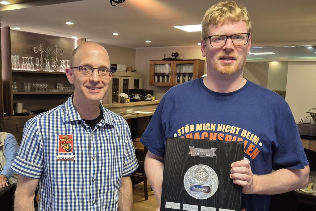 Bei der Saisonabschlussfeier wurde noch einmal auf die vergangene Saison zurückgeblickt und gleichzeitig der Vereinsmeister im Schnellschach ermittelt. Hier blieb Philipp Schulze Schwering ungeschlagen und siegte mit 16,5 Punkten aus 18 Partien vor den punktgleichen Marcel Boldrick und Klaus Schroer (jeweils 12 Punkte) sowie David Beckmann und Christian Farwick (jeweils 11 Punkte). Auch die anderen vereinsinternen Titel gewann Philipp Schulze Schwering. Er wurde sowohl Vereinsmeister als auch Vereinsschnellschachmeister. Nun werden seine Kontrahenten alles geben, damit zumindest der Vereinspokal an einen anderen Gewinner geht.