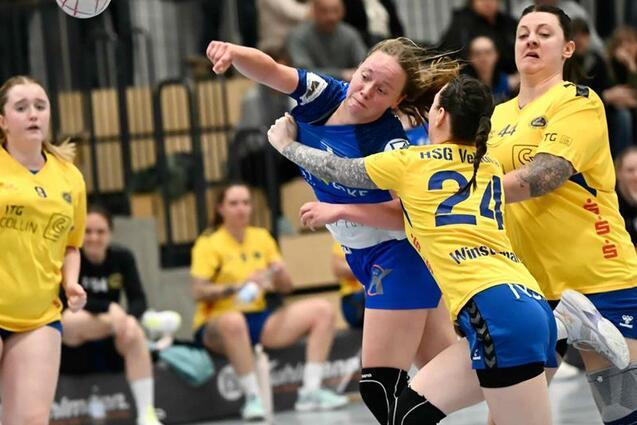 Tatsächlich taten sich die Gastgeberinnen gegen VeRuKa zu Beginn schwer und verpassten es trotz einer anfänglichen Führung, den Gegner auf Distanz zu bringen. Denn die HSG wehrte sich und legte hierbei vor allem eine körperlich robuste Gangart aufs Parkett, an welcher sich die Borkenerinnen manches Mal die Zähne ausbeißen sollten. Der TV bemühte sich darum, die Hürde mit spielerischen Mitteln zu überwinden, ließ sich jedoch zu einigen Fehlwürfen verleiten – auch wenn in den ersten 30 Minuten immerhin 16 Treffer gelingen sollten. Zumindest stand für das Westheider-Team zu Beginn des zweiten Spielabschnitts aber ein knapper Vorsprung.